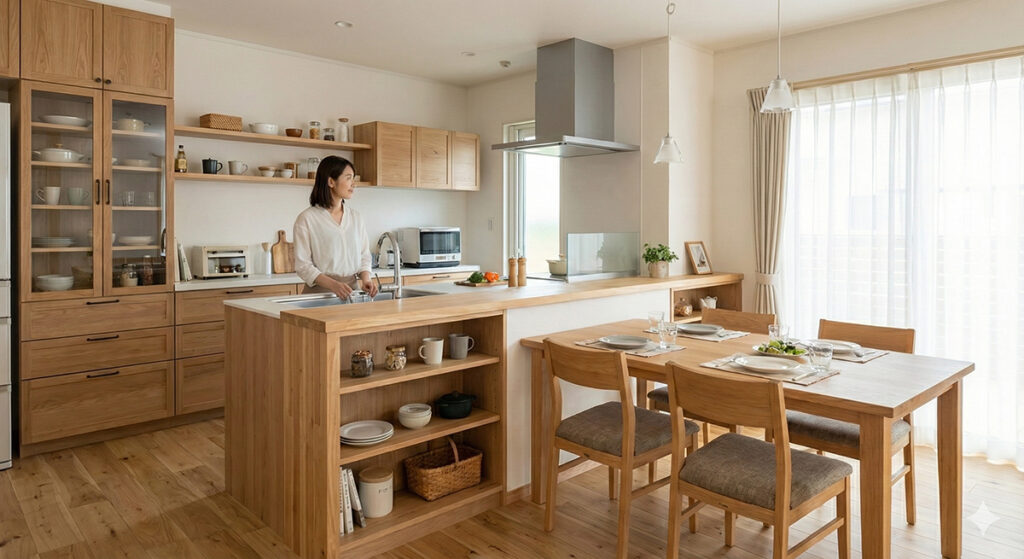 料理や洗濯が楽しくなる、効率的でストレスフリーな間取りをご提案。